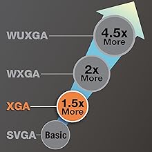 Résolution XGA (1024 x 768) — 1,5 fois plus de résolution que SVGA pour projeter des présentations contenant beaucoup de texte avec plus de détails.